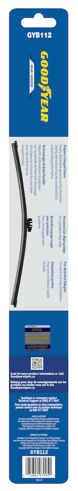 Goodyear Rear wiper blades are designed to provide enhanced rear window visibility. Goodyear offers a complete line of universal rear blades to fit integral, beam and conventional wiper arms, so you can replace with the same style blade that came off your vehicle. Installation is quick and easy with simple to follow instructions inside the package. To see all around you, don’t forget to replace your rear wiper with Goodyear Rear wiper blades. Blades are available in 10” to 16” lengths.