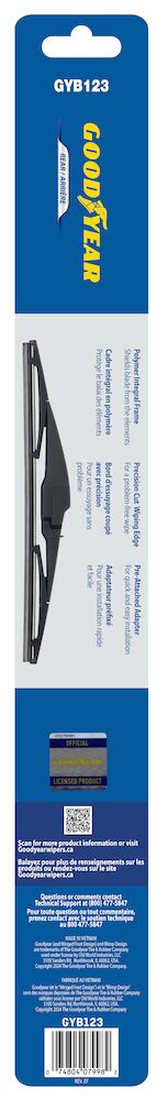 Goodyear Rear wiper blades are designed to provide enhanced rear window visibility. Goodyear offers a complete line of universal rear blades to fit integral, beam and conventional wiper arms, so you can replace with the same style blade that came off your vehicle. Installation is quick and easy with simple to follow instructions inside the package. To see all around you, don’t forget to replace your rear wiper with Goodyear Rear wiper blades. Blades are available in 10” to 16” lengths.