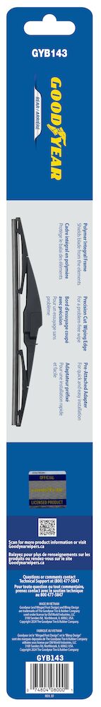Goodyear Rear wiper blades are designed to provide enhanced rear window visibility. Goodyear offers a complete line of universal rear blades to fit integral, beam and conventional wiper arms, so you can replace with the same style blade that came off your vehicle. Installation is quick and easy with simple to follow instructions inside the package. To see all around you, don’t forget to replace your rear wiper with Goodyear Rear wiper blades. Blades are available in 10” to 16” lengths.